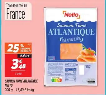 Actuellement en offre chez Netto : NETTO Saumon fumé atlantique ✅ Valable du 10-03 au 16-03.