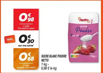 Actuellement en offre chez Netto : NETTO Sucre blanc poudre ✅ Valable du 20-01 au 26-01.