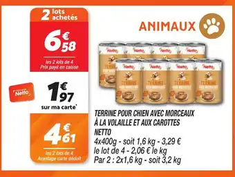 NETTO Terrine pour chien avec morceaux à la volaille et aux carottes offres et promotions en ligne chez Netto