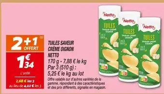 Actuellement en offre chez Netto : Netto tuiles saveur crème oignon ✅ Valable du 26-12 au 31-12.