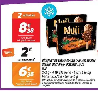 Nuii bâtonnet de crème glacée caramel beurre salé et macadamia d'australie x4 : offres et promos Netto à découvrir
