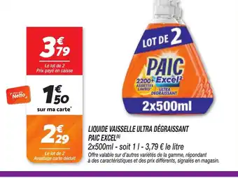 Actuellement en offre chez Netto : PAIC Liquide vaisselle ultra dégraissant excel ✅ Valable du 24-03 au 31-03.