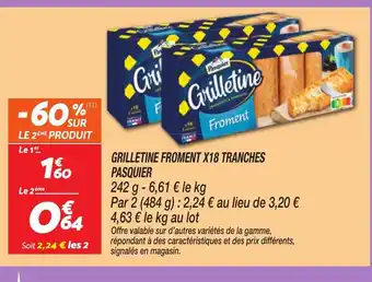PASQUIER Grilletine froment x18 tranches 484 g