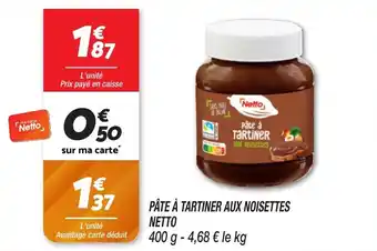 Actuellement en offre chez Netto : Pâte à tartiner aux noisettes netto ✅ Valable du 27-01 au 2-02.
