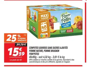 POM'POTES Compotes gourdes sans sucres ajoutés pomme nature, pomme brugnon 4.32 kg