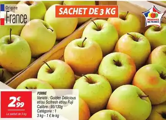 Cette POMME est maintenant disponible chez Netto. Découvrez toutes les promos en cours et profitez de réductions intéressantes. Commandez POMME en ligne via le site officiel de Netto ou achetez-la en magasin à un prix avantageux. Promocatalogues.fr réunit chaque jour les meilleures offres liées à POMME. Envie d’être informé en premier ? Activez l’alerte en cliquant sur la cloche pour recevoir une notification gratuite dès que ce produit revient en promotion.Questions fréquemment posées au sujet de POMME