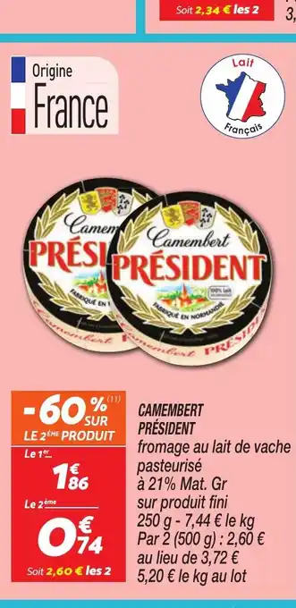 PRÉSIDENT Camembert offres et promotions en ligne chez Netto