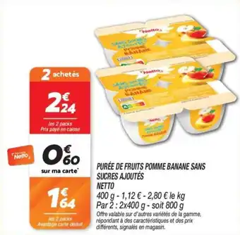Purée de fruits pomme banane sans sucres ajoutés netto : offres et promos Netto à découvrir