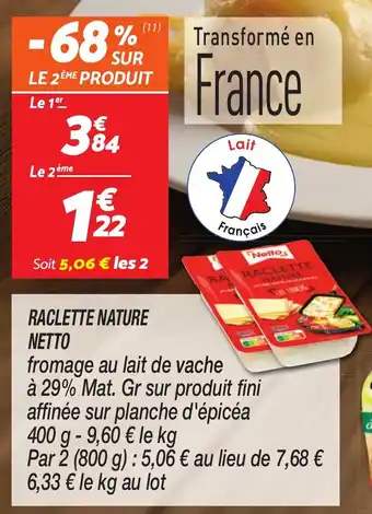 Actuellement en offre chez Netto : Raclette nature netto ✅ Valable du 10-02 au 16-02.