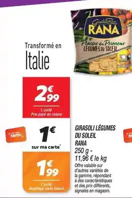 Actuellement en offre chez Netto : Rana - girasoli légumes du soleil ✅ Valable du 2-01 au 12-01.