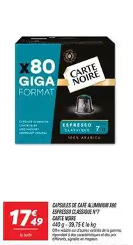 L'offre est disponible dans plusieurs magasins, vérifiez tous les produits pour obtenir le Signal - capsules de café aluminium espresso/capsule caté noire le moins cher. Si vous souhaitez savoir si l'article est en vente avec une plus grosse remise dans un autre magasin, consultez la catégorie 'Supermarché'. Ces offres pourraient aussi vous intéresser : CARTE NOIRE Café en capsules aluminium espresso classique n° 7, CARTE NOIRE Café en capsules aluminium espresso classique n° 7 & CARTE NOIRE Capsules de café aluminium x80 espresso classique n°7.