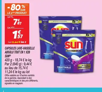 Actuellement en offre chez Netto : SUN Capsules lave-vaisselle absolu tout en 1 x28 ✅ Valable du 10-03 au 16-03.