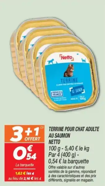 Actuellement en offre chez Netto : Terrine pour chat adulte au saumon netto ✅ Valable du 6-01 au 12-01.