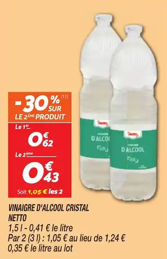Actuellement en offre chez Netto : Vinaigre d'alcool cristal netto ✅ Valable du 10-02 au 16-02.