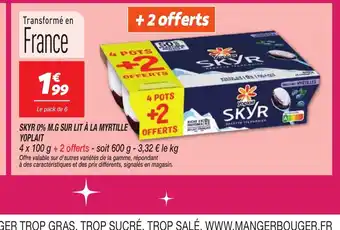 Offre YOPLAIT Skyr 0% m.g sur lit à la myrtille chez Netto