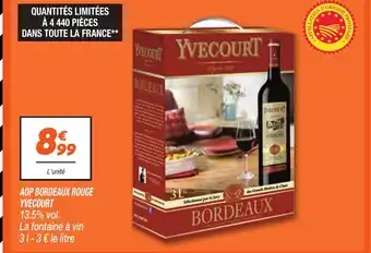 Quand YVECOURT Aop bordeaux rouge sera-t-elle en promotion ? Ou encore : "Est-ce que YVECOURT Aop bordeaux rouge sera en promotion la semaine prochaine ?" C’est une question fréquente. Beaucoup de consommateurs établissent leur liste de courses à l’avance. Pour cette raison, nous mettons en ligne les informations sur les promos à venir dès qu’elles sont connues. Cela vous permet de planifier vos achats et de faire de bonnes affaires. Consultez régulièrement notre site pour savoir si une nouvelle promo sur YVECOURT Aop bordeaux rouge arrive bientôt chez Netto.Questions fréquemment posées au sujet de YVECOURT Aop bordeaux rouge
