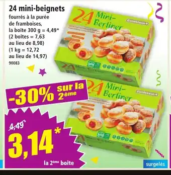 L'offre est disponible dans plusieurs magasins, vérifiez tous les produits pour obtenir le 24 mini-beignets le moins cher. Si vous souhaitez savoir si l'article est en vente avec une plus grosse remise dans un autre magasin, consultez la catégorie 'Bazar et Déstockage'. Ces offres pourraient aussi vous intéresser : 12 mini beignets, 8 mini beignets fourrés & 16 mini beignets chocolat noisettes.