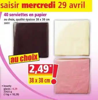 Actuellement en offre chez Norma : 40 serviettes en papier ✅ Valable du 29-04 au 5-05.