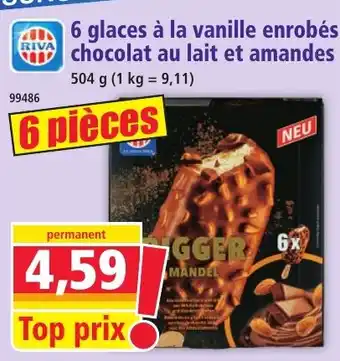 Actuellement en offre chez Norma : 6 glaces à la vanille enrobés chocolat au lait et amandes ✅ Valable du 29-04 au 5-05.