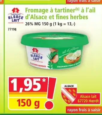 Offre ALSACE LAIT Fromage à tartiner à l'ail d'Alsace et fines herbes chez Norma