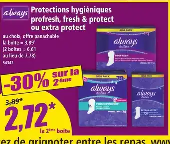 ALWAYS Protections hygiéniques profresh, fresh & protect ou extra protect