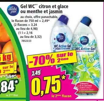 Actuellement en offre chez Norma : AMBI PUR Gel WC citron et glace purou menthe et jasmin ✅ Valable du 11-02 au 17-02.