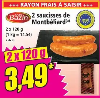 Andre bazin 2 saucisses de montbéliard : offres et promos Norma à découvrir
