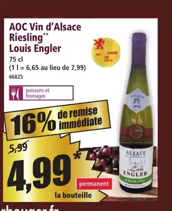AOC Vin d'Alsace Riesling Louis Engler offres et promotions en ligne chez Norma