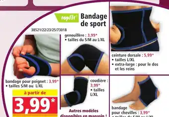 En plus de l'offre Bandage de sport, Norma propose une large gamme de produits. Consultez le Catalogue Norma hebdomadaire pour découvrir les meilleures offres et promotions. En plus de Bandage de sport, il y a aussi : Sensiplast chevillère, coussinets ou bandage, Chaussettes de sport & U.S. SPORT AMERICA Pantalon de sport/loisirs homme.