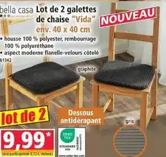 Actuellement en offre chez Norma : Bella casa - lot de 2 galettes de chaise vida ✅ Valable du 18-02 au 24-02.