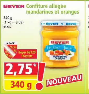 Offre Beyer confiture allégée mandarines et oranges chez Norma