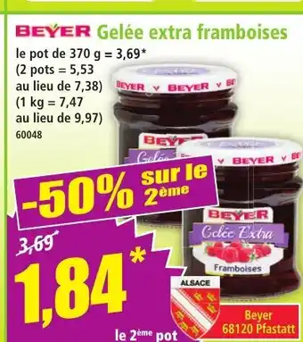 Actuellement en offre chez Norma : BEYER Gelée extra framboises ✅ Valable du 21-01 au 27-01.