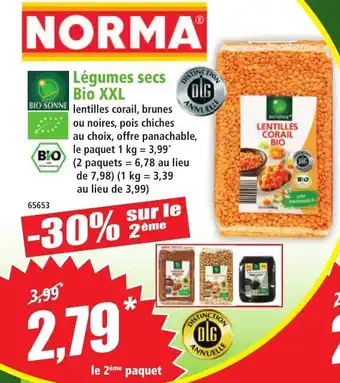Actuellement en offre chez Norma : BIO SONNE Légumes secs Bio XXL ✅ Valable du 14-01 au 20-01.