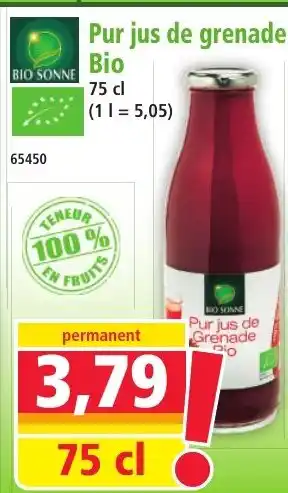 BIO SONNE Pur jus de grenade Bio offres et promotions en ligne chez Norma