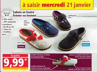 Offre BIOFUN Sabots en feutre femme ou homme chez Norma