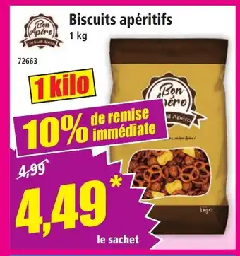 Actuellement, Biscuits apéritifs est en promotion chez Norma. Toutes les informations utiles comme le prix, les conditions et la durée de validité sont affichées sur cette page. Consultez également les promotions similaires pour Biscuits apéritifs, afin de faire le meilleur choix. La promo Biscuits apéritifs est valable du 25-02-2026 au 03-03-2026. Si elle est expirée, regardez les autres offres équivalentes. Vous pouvez aussi suivre cette catégorie de produit pour être alerté lorsqu’une nouvelle promotion Biscuits apéritifs apparaît chez Norma.Questions fréquemment posées au sujet de Biscuits apéritifs