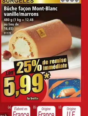 Actuellement en offre chez Norma : Bûche façon Mont-Blanc vanille/marrons ✅ Valable du 22-12 au 28-12.