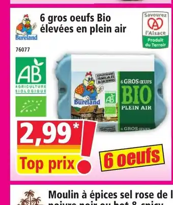 BURELAND 6 gros oeufs Bio élevées en plein air offres et promotions en ligne chez Norma