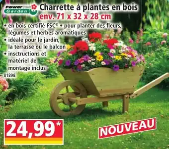 Actuellement en offre chez Norma : Charrette à plantes en bois ✅ Valable du 29-04 au 5-05.