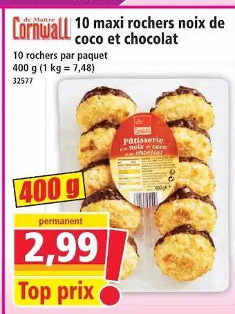 Offre Cornwall 10 maxi rochers noix de coco et chocolat chez Norma