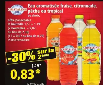Actuellement en offre chez Norma : CRISTALINE Eau aromatisée fraise, citronnade, pêche ou tropical ✅ Valable du 4-03 au 10-03.