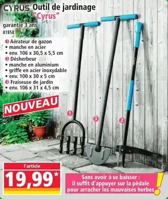 Actuellement en offre chez Norma : Cyrus outil de jardinage cyrus ✅ Valable du 29-04 au 5-05.