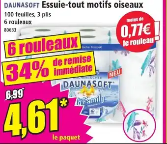Actuellement en offre chez Norma : DAUNASOFT Essuie-tout motifs oiseaux ✅ Valable du 4-02 au 10-02.