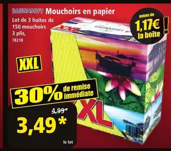 Actuellement en offre chez Norma : DAUNASOFT Mouchoirs en papier ✅ Valable du 14-01 au 20-01.