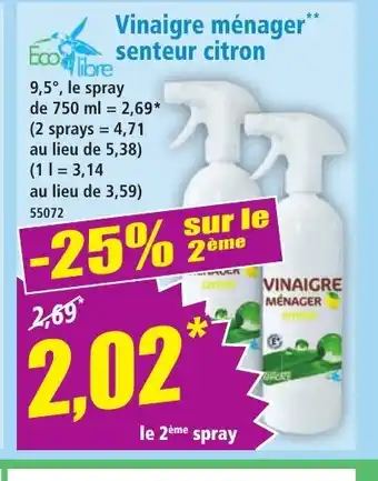 Actuellement en offre chez Norma : ECO LIBRE Vinaigre ménager senteur citron ✅ Valable du 25-02 au 3-03.