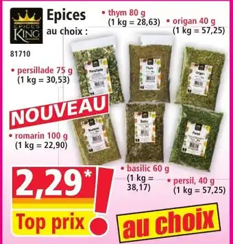 En plus de l'offre Epices, Norma propose une large gamme de produits. Consultez le Catalogue Norma hebdomadaire pour découvrir les meilleures offres et promotions. En plus de Epices, il y a aussi : Épices au choix, Épices guacamole old el paso & Wedges aux épices douces.