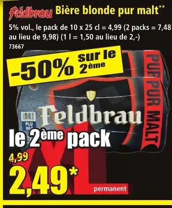 Actuellement en offre chez Norma : FELDBRAU Bière blonde pur malt ✅ Valable du 11-02 au 17-02.