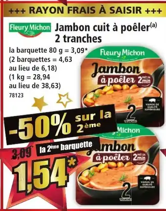 Actuellement en offre chez Norma : FLEURY MICHON Jambon à poêler 2 tranches ✅ Valable du 17-12 au 21-12.