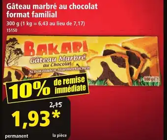 Gâteau marbré au chocolat format familial : offres et promos Norma à découvrir