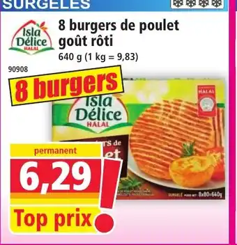 ISLA DÉLICE 8 burgers de poulet goût rôti 640 g